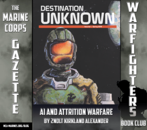 Reliance on artificial intelligence to make decisions could result in the Marine Corps’ institutionalization of attrition warfare. A case for this is shown in Destination Unknown’s “A Matter of Instinct,” written by Major Timothy Riemann. While the concept of AI is often one of an independent, ever-learning computer mind, it often looks more akin to a tool that still requires some level of input by the user. Riemann’s AI is no exception.
