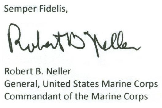 The MOC does not provide an answer to every problem. Rather, it is intended to generate professional debate and discussion about our future challenges. We need every Marine and Sailor to seek creative solutions to today’s and tomorrow’s complex problems. We need your ideas and your critical thinking. We need to change where it makes sense, adapt as quickly as possible, and constantly innovate to stay ahead of our adversaries. Our ability to adapt more quickly than our enemies will be vital to our future success. We need all Marines to read, discuss, and challenge the ideas in the MOC. As steel sharpens steel, your review and professional recommendations will sharpen our concept of how we will fight in the future. Your proactive involvement in validating our operating concept is critical to ensuring we can Innovate, Adapt, and Win!