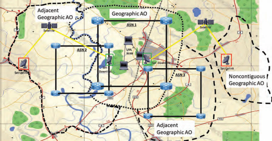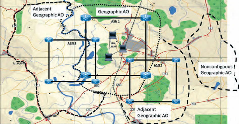 Cyberspace, without defined boundaries, is akin to a map without military graphics, markings, or sector delineations. Autonomous systems, designated by numbers in shared databases (known as ASNs), are interconnected, high-level routers and switches that connect to other networks over physical cables. Large organizations, such as Internet service providers, own and operate ASNs and conduct the intra-domain routing of packets using the language of border gateway protocol.7 Large international backbones carry data over vast distances between ASNs. Large networks may also connect via satellite links using radio frequencies. Once the data reaches a regional gateway, network access points convert the data to the format of transmission control protocol/Internet protocol (TCP/IP). Subordinate to these large networks are smaller networks known as widearea networks and local-area networks, which use TCP/IP to send and receive data, known as inter-domain routing. To reach its final destination, data may ride over multiple methods of transportation, including radio waves and microwaves. The client/server methodology used by TCP/IP allows data to travel to the appropriate destination via routers using interior gateway protocols and provides the appropriate data type based on the server used to deliver the data.