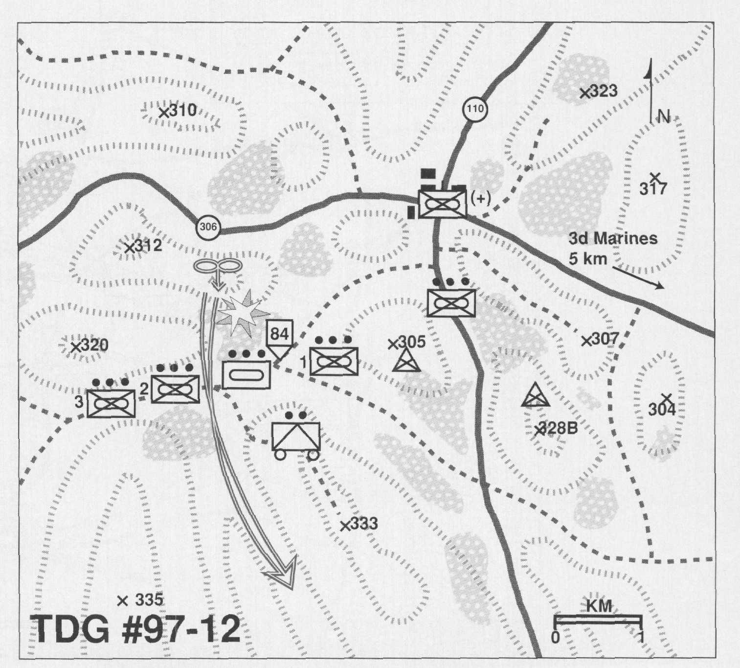 This scenario is roughly the reverse of Tactical Decision Game #979, "Clash at Timpan-ni, the solutions to which were published in MCG, Nov97. Does having seen the situation through the enemy's eyes influence your decision?