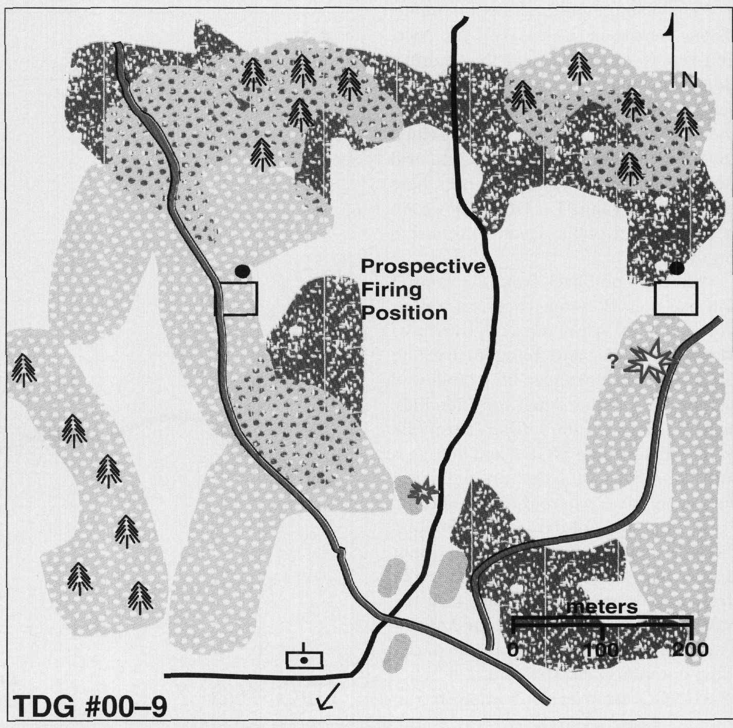 In the space of 2 minutes, reach a decision on what you intend to do and what orders you will issue to the AP. Provide a sketch of your decision and a discussion of the rationale behind it. Submit your solution to Marine Corps Gazette, TDG #00-9, P.O. Box 1775, Quantico, VA 22134 or fax 703-630-9147.