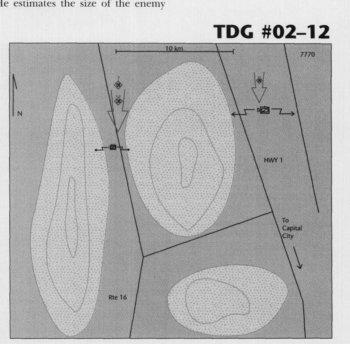 In a time limit of 3 minutes issue your orders to your platoon commanders. Provide a fragmentary order, overlay of your scheme of maneuver, and the rationale for your actions. Submit your solution to Marine Corps Gazette, TDG #02-12, P.O. Box 1775, Quantico, VA 22134, fax 703-630-9147, or e-mail <gazette@ old.mca-marines.org>.