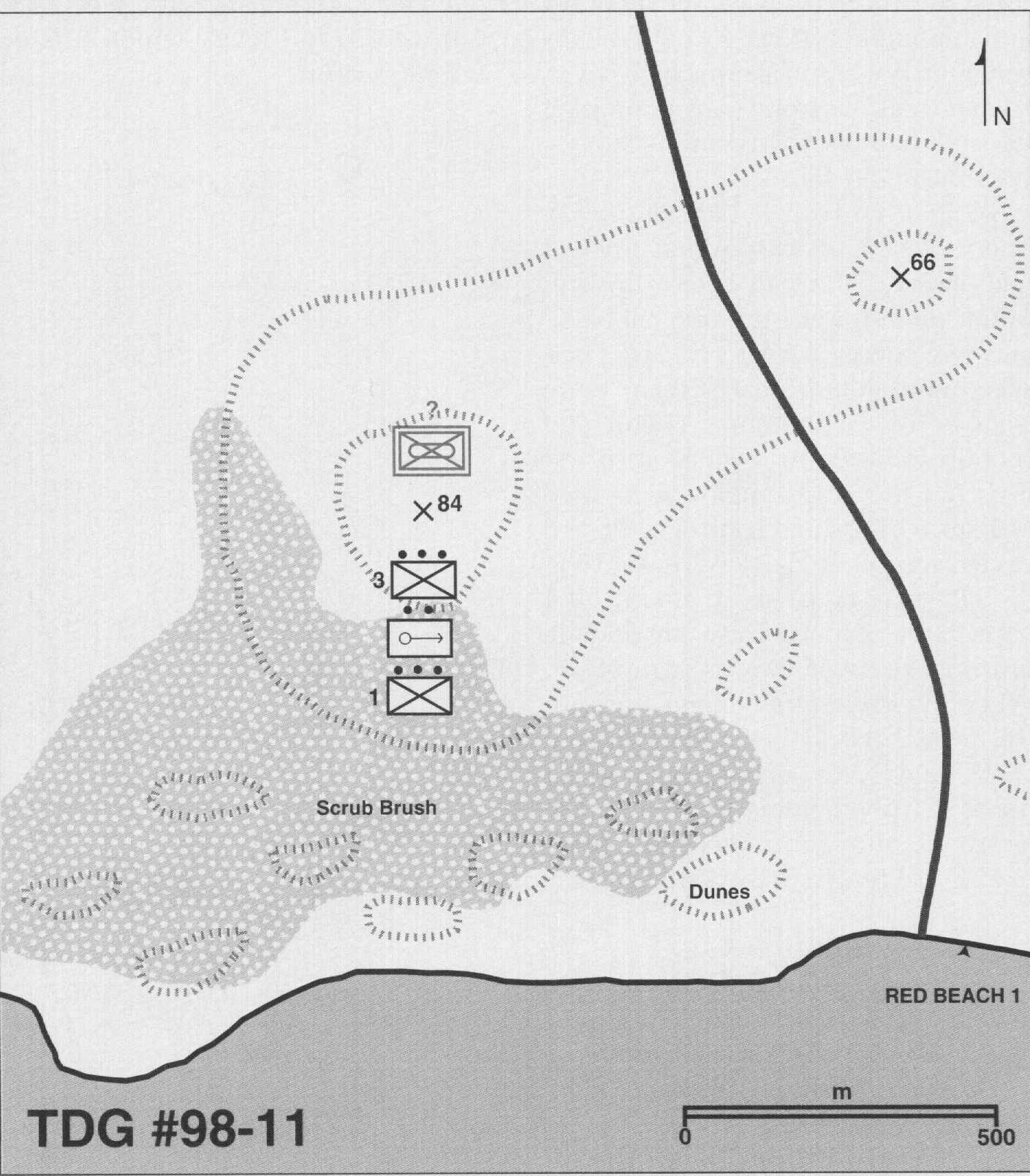 You are the commander of Company C, the boat company for Battalion Landing Team (BLT) 1/2. The BLT will be landing across Red Beach 1 in order to secure a beachhead for followon forces. Your company has been tasked with landing at H-5 and moving to secure Hill 84 in order to control the high ground overlooking the beach prior to H-hour and to protect the BLT's left flank.