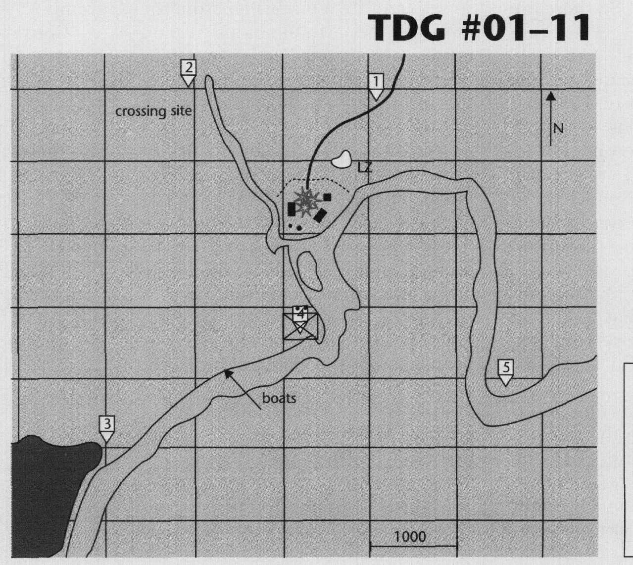 You are a squad leader conducting a security patrol along the Chepo River. The remainder of your platoon is located at the base camp, having just returned from operations up river. The rest of the company is operating on the east side of the river and with small craft (two riverine assault craft and six rigid raider craft) on the river to the south.