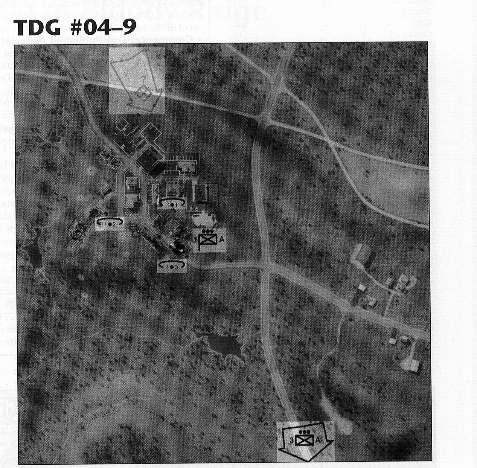 In a time limit of 2 minutes, issue orders to your subordinates. The players have 8 minutes to predeploy before the scenario will automatically begin. After completing your course of action, describe any additional actions that you had to take while the scenario was being played out. Then provide a sketch of your initial plan and an explanation of the outcome. Submit your solution to the Marine Corps Gazette, TDG #04-9, P.O. Box 1775, Quantico, VA 22134, fax 703-630-9147, or email <gazette @mca-marines.ore>.
