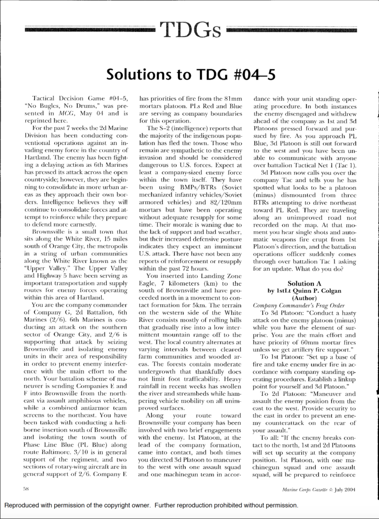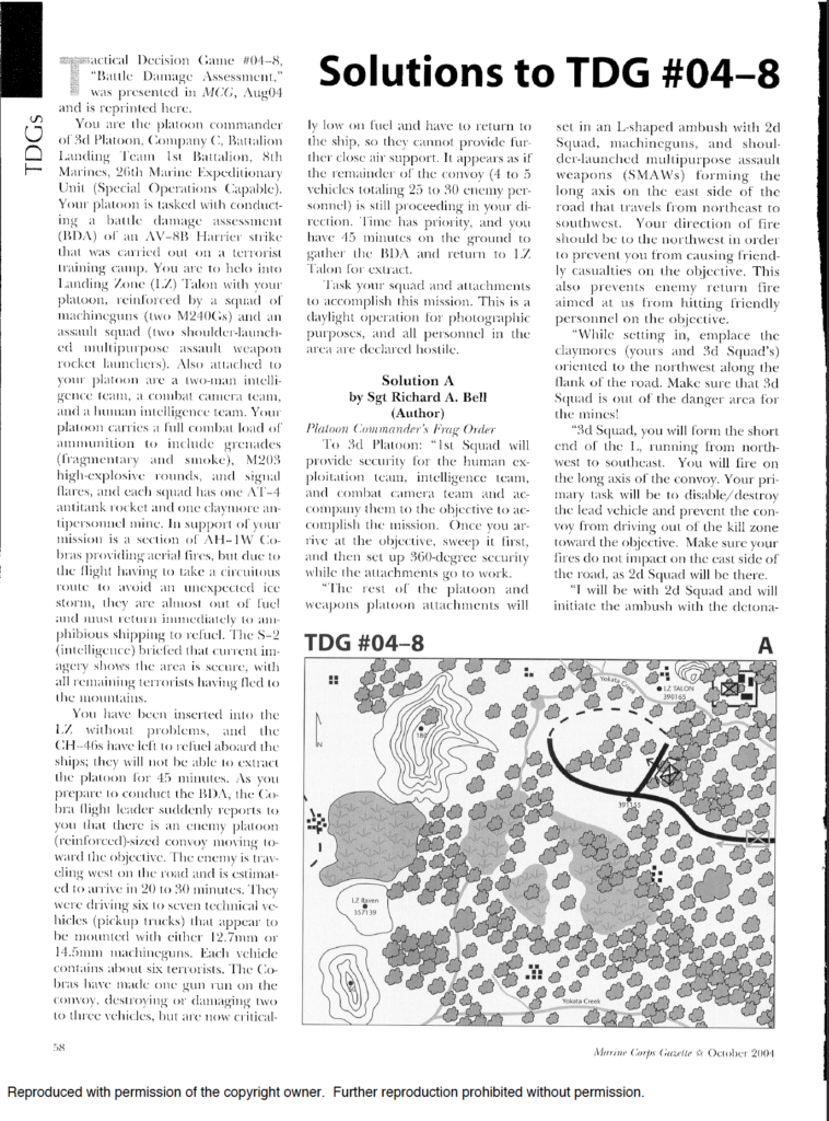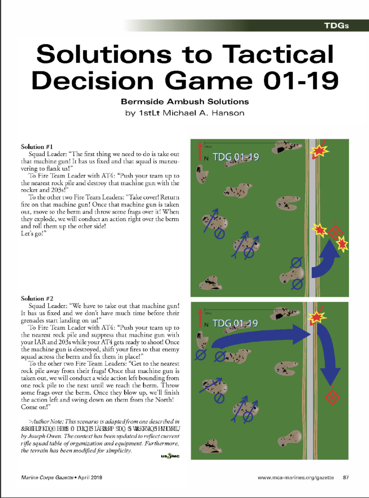 Tactical Decision Game 01-19 (Bermside Ambush)